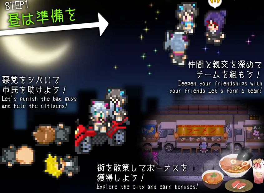 提升好感度后就能组队同行。一起痛扁在街头游荡的小混混,帮助陷入困境的居民吧!