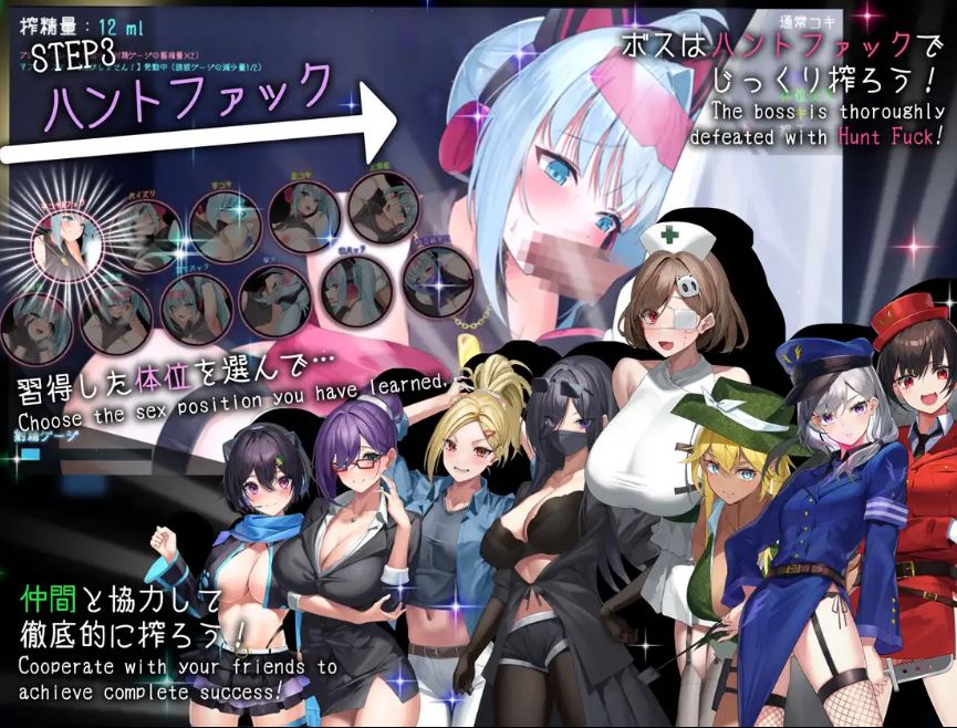 与个性鲜明的伙伴们携手合作,运用各种性爱技巧将男人的精液榨取殆尽吧!