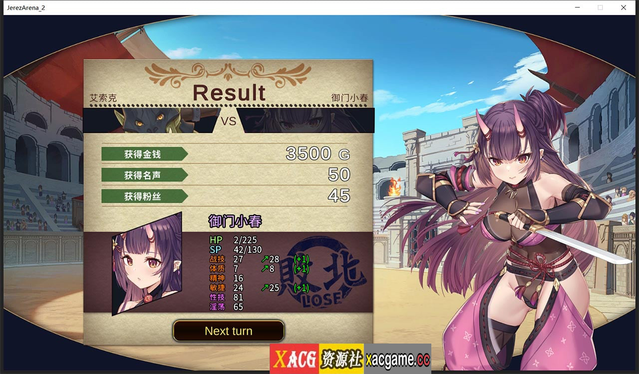 角色养成:透过『训练』与『调教』,奴隶们可提升自己的能力并习得战斗技能。