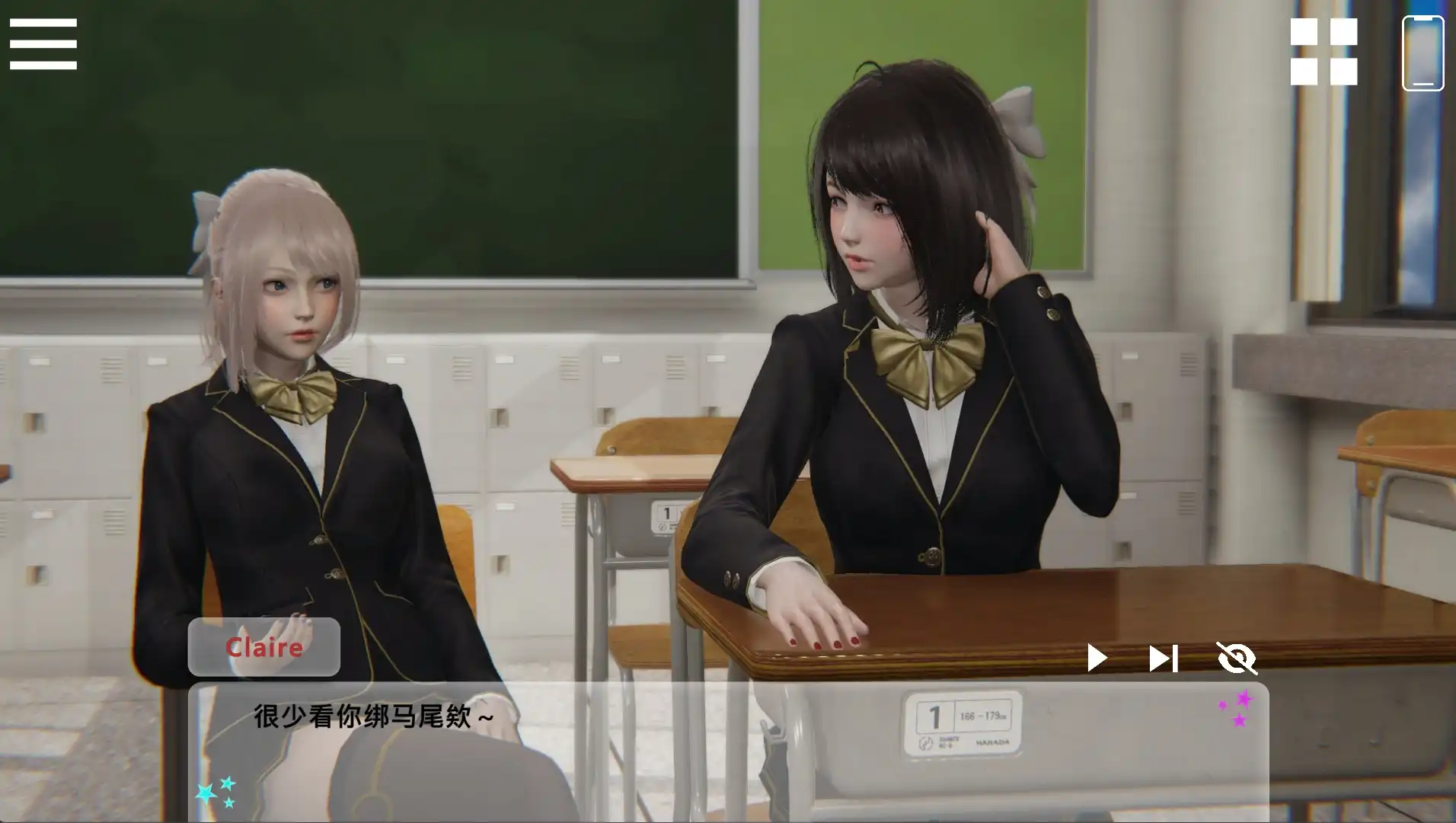 1. 新增灯光效果模块我一直在努力让视觉效果更加精致,调整灯光和滤镜效果。就我个人而言,我认为它有所改善。你觉得怎么样?我希望你能分享你的想法和反馈。2. 小游戏是的,我花了很多时间为这次更新制作小游戏。这些小游戏是 Concert Girls 的核心玩法,你可以训练机构的偶像并通过这些活动培养他们的技能。3. 故事更新本次更新标志着 Concert Girls 序章的结束。从第 4 集开始,故事将迎来转折并达到高潮。如果您对接下来的剧情发展感到好奇,请务必关注后续更新!我强烈建议使用“自动播放”来播放故事情节,因为我在设计故事节奏时就考虑到了自动播放,以获得更身临其境的体验。4. 最后,关于“重制”在制作EP4的过程中,我会花一些时间重新制作部分早期渲染图。毕竟那些都是早期制作的,连我都觉得它们看起来有点粗糙……哈哈(还有!恩佐有新发型了!我需要相应地更新简介!)热修复(0.3.3)修复视频播放错误修复了与 Rachael 一起购买咖啡时的滞后问题修复无法触发任务的问题修复保存/加载错误修复了未满18岁可以进入游戏的bug。修复 Nya 故事情节中断 修复缺失的越南语翻译修复画廊错误