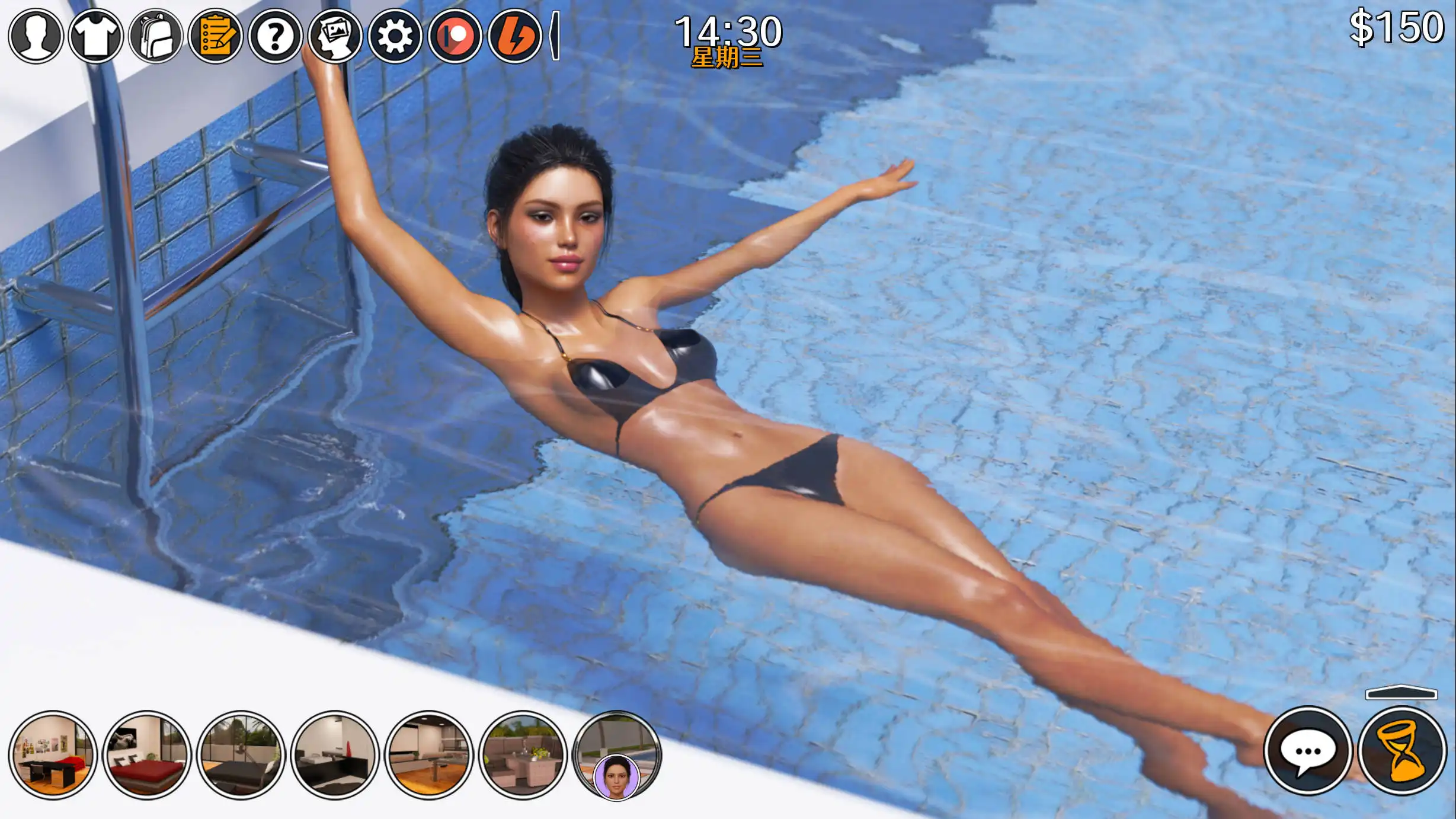 v0.05.00对于安:- 在电视上与安的新互动(如果麦克斯因做家务而受到安的表扬);- 完全创建了任务“我们会看到什么,妈妈?”。对于Alice:- Max可以在电视上给Alice做足部按摩(如果学过足部按摩课程的话);- 麦克斯可以让爱丽丝脱掉牛仔裤接受电视按摩(在电视上增进关系和进行足部按摩之后);- 完全创建了任务“天才按摩师”;- 有机会通过隐藏的摄像头观看爱丽丝在浴缸中自慰(局外人的视角);- 麦克斯可以说服爱丽丝做色情网络摄像头;- 麦克斯帮助爱丽丝为色情网络摄像头挑选衣服(此活动有很多变化);- Max可以给Alice买新内衣;- Alice可以在她的房间里当着Max的面试穿新内衣(如果你和Alice一起购物时不买内衣的话)。米娅:- 米娅第二次来访(比赛第 12 天)。对于麦克斯和总计:- 麦克斯可以购买或获得一个活梯(暂时只买一个);- Max可以购买并在浴室安装隐藏式摄像头(需要梯子);- 当安、爱丽丝、丽莎洗澡时,麦克斯可以通过浴室里隐藏的摄像头看到;- 当安、爱丽丝、丽莎洗澡时,麦克斯可以通过浴室里隐藏的摄像头看到;- 现在如果3天没有使用技能,技能经验会下降;- 现在要升级一项技能,你需要至少 70% 的技能经验;- Max可以购买并学习有效沟通的课程;- Max可以将说服技能提升至2级;- 麦克斯在洗澡时可以幻想(到目前为止,爱丽丝和安各有一个幻想);- 更新培训材料(技能)。
